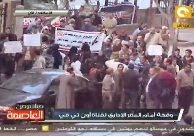 نظم العشرات وقفة احتجاجية أمام مقر إدارة فضائية (أون تي في) احتجاجًا على ما أسموه بـ"الإعلام التحريضي" على جيش وشرطة مصر.